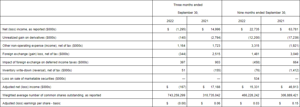 The Company has included certain non-IFRS measures including “Cash cost per gold ounce sold”, “All-in sustaining cost per gold ounce sold”, “Adjusted net (loss) income”, “Adjusted (loss) earnings per share – basic” and “Net cash” in this press release to supplement its financial statements, which are presented in accordance with International Financial Reporting Standards (“IFRS”). Cash cost per gold ounce sold is equal to production costs less silver sales divided by gold ounces sold. All-in sustaining cost per gold ounce sold is equal to production costs less silver sales plus general and administrative, exploration, accretion and other expenses and sustaining capital expenditures divided by gold ounces sold. Adjusted net (loss) income is equal to net (loss) income less foreign exchange impacts on deferred income taxes, foreign exchange (gains) losses, non-cash impairment write down (reversal) of work-in-process inventory, non-cash impairment write down (reversal) of mineral properties, plant and equipment, unrealized (gains) losses on derivatives and care and maintenance expenses. Adjusted (loss) earnings per share – basic is equal to adjusted net (loss) income divided by the basic weighted average number of common shares outstanding. Net cash is calculated as the sum of the cash and cash equivalents balance net of debt as at the statement of financial position date. The net debt calculation excludes the convertible debentures and lease liabilities, due to the nature of the obligations, in order to show the nominal undiscounted debt. The Company believes that these measures provide investors with an alternative view to evaluate the performance of the Company. Non-IFRS measures do not have any standardized meaning prescribed under IFRS. Therefore they may not be comparable to similar measures employed by other companies. The data is intended to provide additional information and should not be considered in isolation or as a substitute for measures of performance prepared in accordance with IFRS.