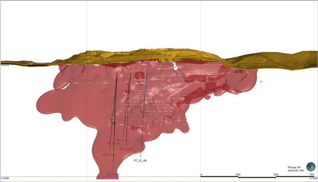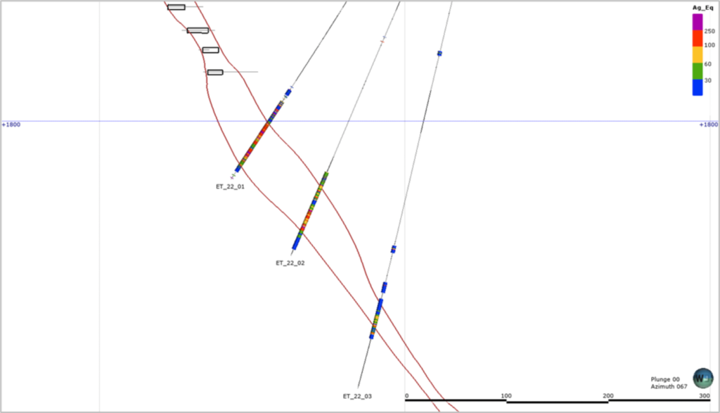 - Hole Number – ET 22-01: 206 AgEq g/t over 41.0 metres, including 4,527 AgEq g/t over 0.19 metres