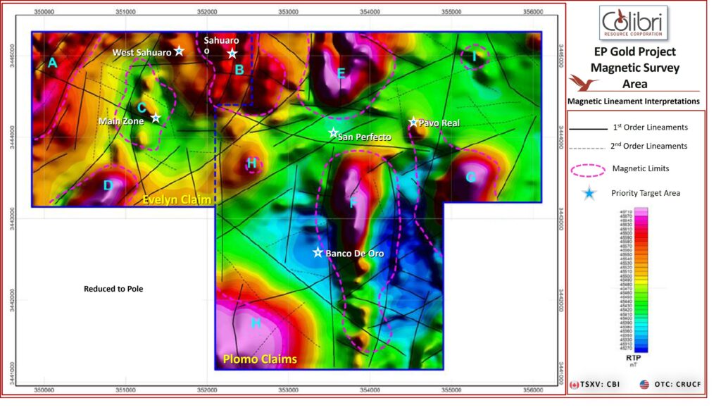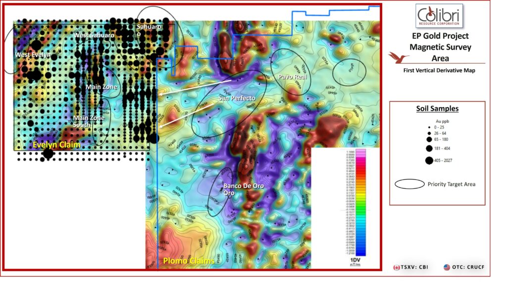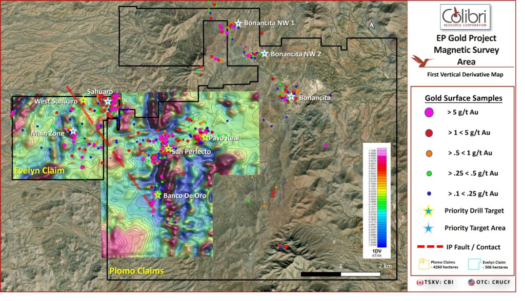 Ian McGavney, President & CEO of Colibri commented: “We have only recently received the final map products from the drone magnetic survey, and it is already paying dividends. The results of the survey have provided “proof-of-concept” of our near-term drill plan, has provided key information for development of our EP Gold Project exploration model, and has resulted in the identification of new target areas.”