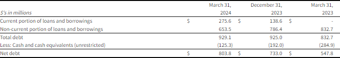 The Company believes that in addition to conventional measures prepared in accordance with IFRS, the Company and certain investors and analysts use net debt to evaluate the Company’s performance. Net debt does not have any standardized meaning prescribed under IFRS, and therefore it may not be comparable to similar measures employed by other companies. This measure is intended to provide additional information and should not be considered in isolation or as a substitute for measures of performances prepared in accordance with IFRS. Net debt is calculated as the sum of the current and non-current portions of loans and borrowings, net of the cash and cash equivalent balance as at the balance sheet date. A reconciliation of net debt is provided below.