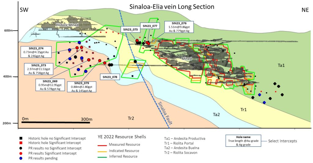 - Hole SIN23_076: 9.86 g/t Au & 779 g/t Ag over 1.51m;