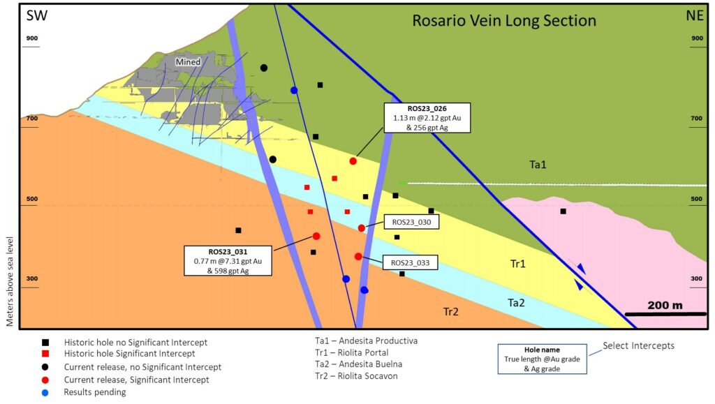 - Hole RO23_031: 7.31g/t Au & 598 g/t Ag, 0.77 m;
