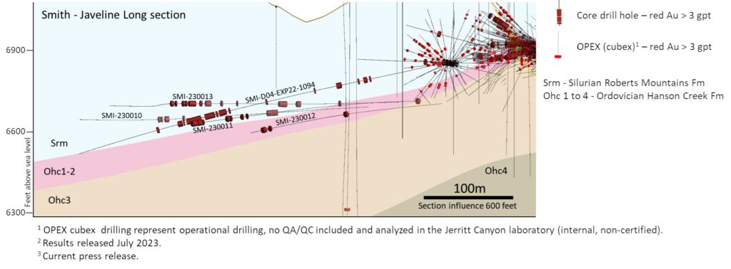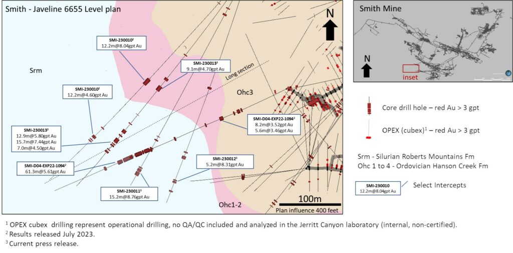 Drilling at Jerritt Canyon has returned positive results located within the SSX and Smith mine areas (Figure 8).