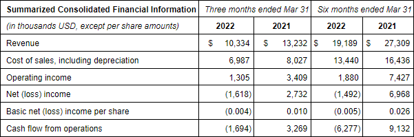 This news release should be read in conjunction with the interim condensed consolidated financial statements for the three and six months ended March 31, 2022, notes to the financial statements, and management’s discussion and analysis for the quarter ended March 31, 2022, which have been filed on SEDAR and are available on the Company’s website.