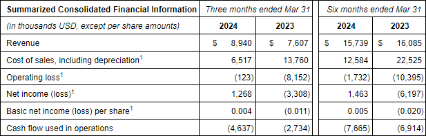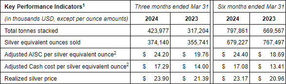 Additional GAAP measures that are presented on the face of the Company’s consolidated statements of comprehensive income include “Operating income (loss)”. These measures are intended to provide an indication of the Company’s mine and operating performance. Per ounce measures are calculated by dividing the relevant mining and processing costs and total costs by the tonnes of ore processed in the period. “Adjusted cash costs per ounce” and “Adjusted all-in sustaining costs per ounce” are used in this analysis and are non-GAAP terms typically used by mining companies to assess the level of gross margin available to the Company by subtracting these costs from the unit price realized during the period. These non-GAAP terms are also used to assess the ability of a mining company to generate cash flow from operations. There may be some variation in the method of computation of these metrics as determined by the Company compared with other mining companies. In this context, “Adjusted cash costs per ounce” reflects the cash operating costs allocated from in-process and dore inventory associated with ounces of silver and gold sold in the period. “Adjusted cash costs per ounce” may vary from one period to another due to operating efficiencies, grade of material processed and silver/gold recovery rates in the period. “Adjusted all-in sustaining costs per ounce” include total cash costs, exploration, corporate and administrative, share based compensation and sustaining capital costs. For a reconciliation of non-GAAP and GAAP measures, please refer to the Management Discussion and Analysis dated May 7, 2024 for the three months ended March 31, 2024, as presented on SEDAR.