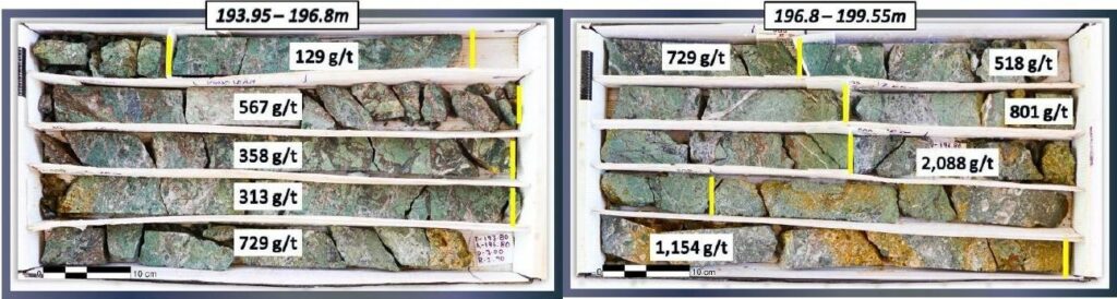 0.2 m at 1,774 g/t Ag (from 116.1 m)