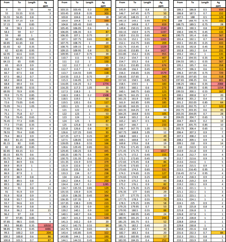 Table 3: SMS22-10 Individual Silver Assay Results (ppm)