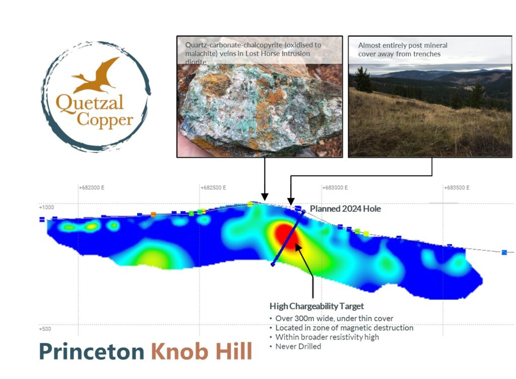 The targets at the Princeton Copper project have only two reported historic drill holes. Quetzal’s technical team compiled historic mapping with new geophysics data and four new targets emerged from that data: