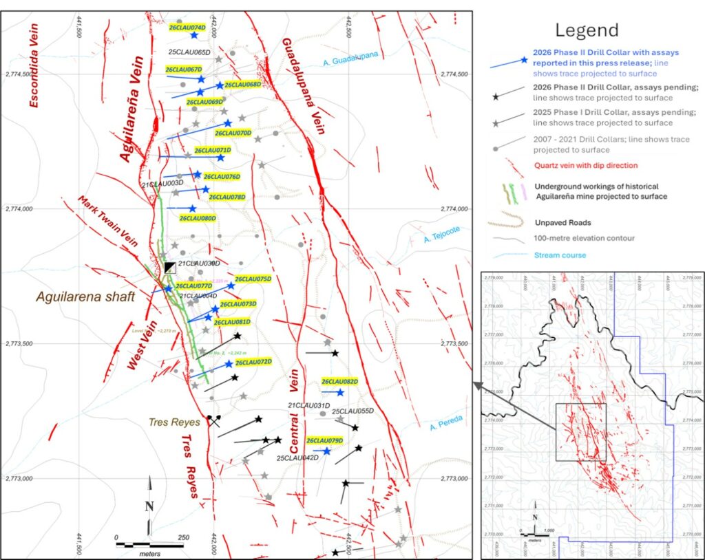 Pacifica Silver reported new high-grade silver-gold results from surface sampling at its Claudia Project in Durango, identifying multiple drill targets including the Pinolera zone and Contraria vein swarm. The company is advancing a 20,000 m drill program to expand mineralization and has granted 1.4 million stock options to align management with project development.