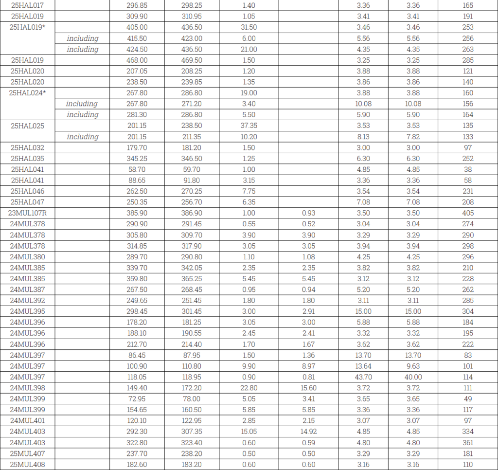 New highlight intercepts can be found in Table 1, and in Figures 2 through 5 at the end of this news release.