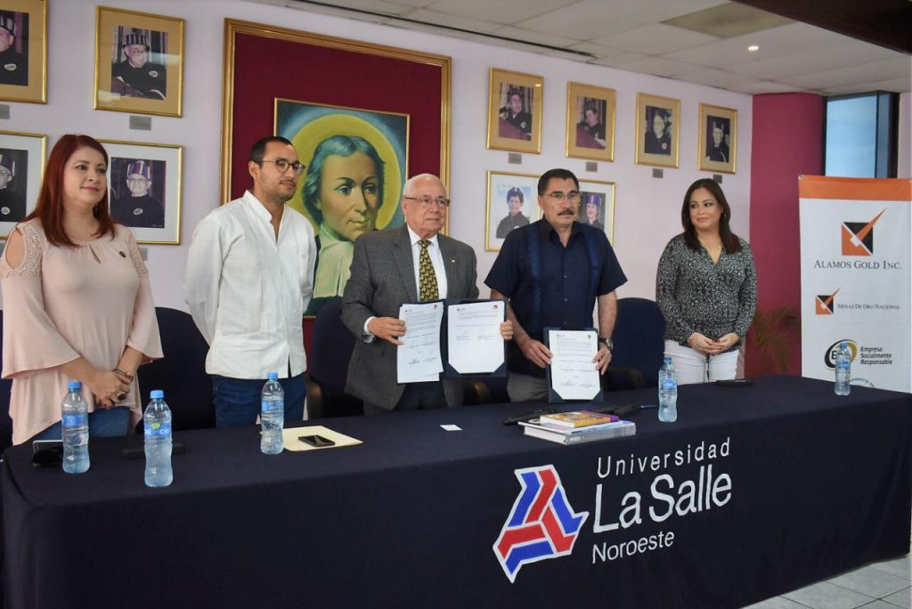 Firmaron el convenio el Vicepresidente Senior de Alamos Gold en México, Dr. Luis Chávez Martínez, y el Dr. Salvador Valle Gómez, Rector de la Universidad La Salle Noroeste. El acuerdo fue celebrado en la casa de estudios con sede en Ciudad Obregón, Sonora.