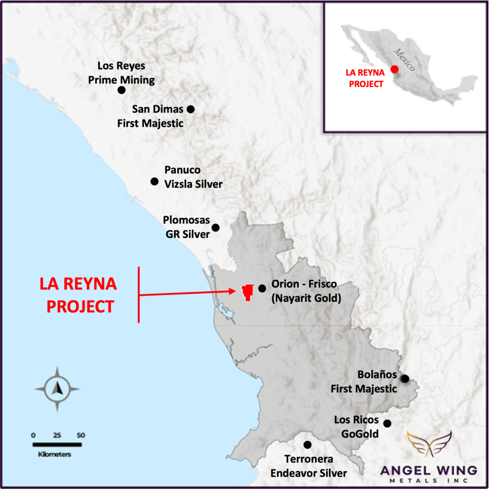 Angel Wing Metals (TSXV:AWM) is focused on the exploration and development of its portfolio of precious metals properties in Mexico and Canada. The Company’s flagship La Reyna Project covers 106.89 km2 in the southern extension of the prolific Sierra Madre Occidental gold-silver belt in the state of Nayarit, Mexico. Angel Wing Metals is committed to sustainable and responsible exploration and business activities in line with industry best practices, supportive of all stakeholders, including the local communities in which the Company operates.
