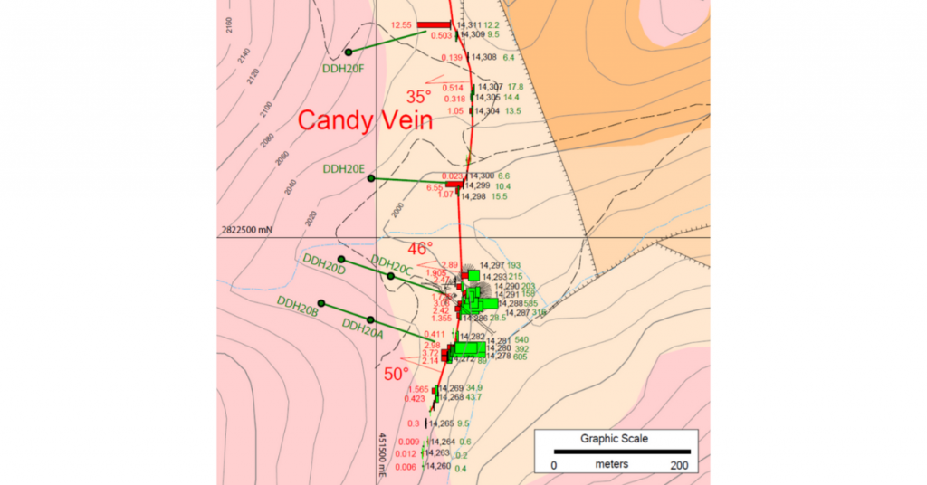 Gold-silver mineralization at Nora is hosted within structurally-controlled epithermal veins. The drill sites have been selected based on a geological review including surface samples collected in August 2019 (reported September 26, 2019), as well as available historical information. Drill sites are planned on four sections on the Candy vein, spaced over a strike length of 500 metres, all below high-grade silver and gold samples from vein outcrops and rock dumps from earlier underground workings. The Candy vein has not been previously drilled. A second epithermal vein outcrop, the Nora vein, occurs 600 metres northeast of the Candy vein with a near parallel north-south strike and has not been previously drill tested or mined. The two parallel vein structures at the Nora project, coupled with the large areas of anomalous silver and base metal values in soil samples surrounding the veins, highlight the project’s potential for hosting a large mineralized system. Details of selected drill targets were outlined in a prior news release dated April 29, 2020.