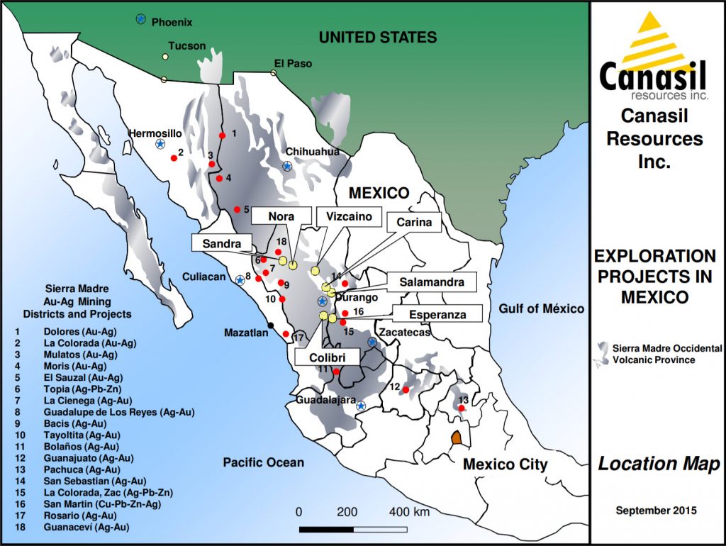 Canasil is a Canadian mineral exploration company with a strong portfolio of 100% owned silver-gold-copper-lead-zinc projects in Durango and Zacatecas States, Mexico, and in British Columbia, Canada. The Company’s directors and management include industry professionals with a track record of identifying and advancing successful mineral exploration projects through to discovery and further development. The Company is actively engaged in the exploration of its mineral properties, and maintains an operating subsidiary in Durango, Mexico, with full time geological and support staff for its operations in Mexico.