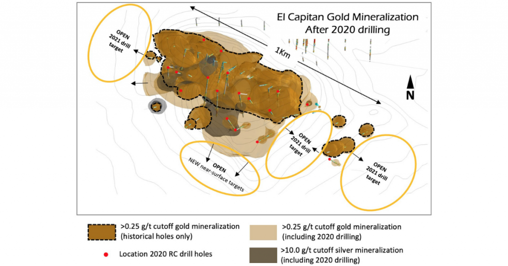 - Mineralization at the El Capitan gold zone remains open to expansion to the east west and down-dip