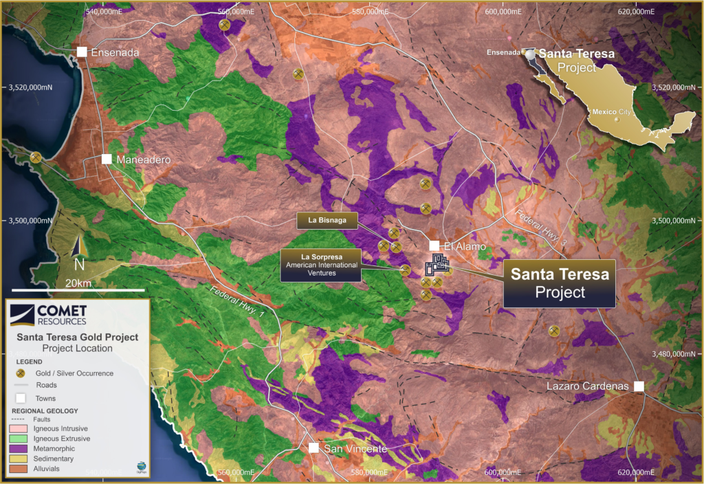 Comet Resources Limited (Comet or the Company) (ASX:CRL) is pleased to provide an update on progress at the Santa Teresa Gold Project (the “Project”) in Baja California, Mexico. A comprehensive mapping campaign of historical drill collars, shafts and artisanal workings has been conducted over the Project area by consultant geologists Minera Cascabel. The mapping process identified numerous narrow vein structures at surface, which are in addition to the known vein structures targeted in the 2008 drilling campaign.