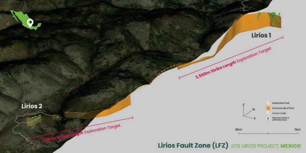 - Drilling will test ~900m of strike within the Lirios Fault Zone (LFZ), a 9km long system.