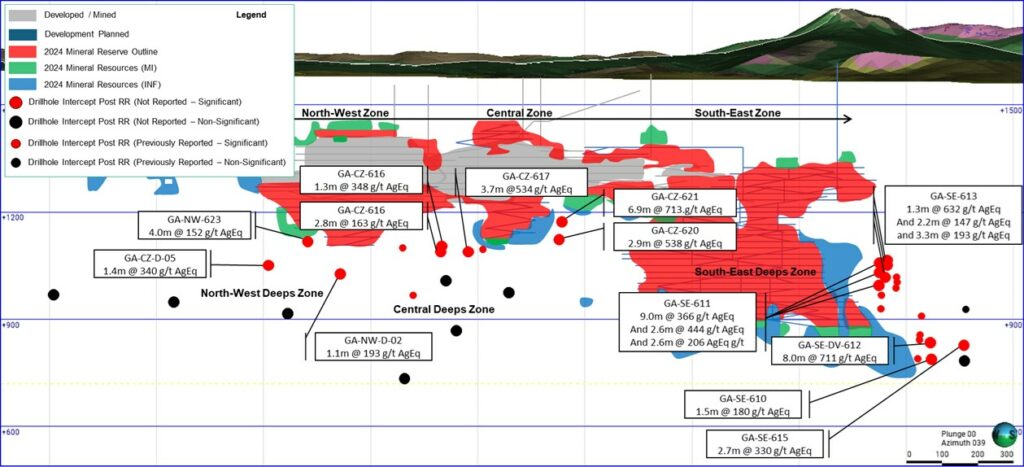 Exploration drilling designed to expand near-mine mineralization intersected significant silver and base metal mineralization while targeting the extension of the South-East Deeps orebody, along with exploration of the recently identified Central and North-West Deeps mineralization zones. Results from the program are summarized below (Figure 2).