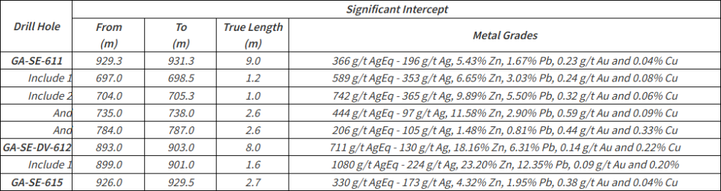 Ongoing exploration drilling intersected significant silver and base metals mineralization across all three zones tested: South-East Deeps, Central Deeps and North-West Deeps. A selection of significant drill hole intercepts from these zones (Figure 1) are highlighted in Tables 1 and 2 below: