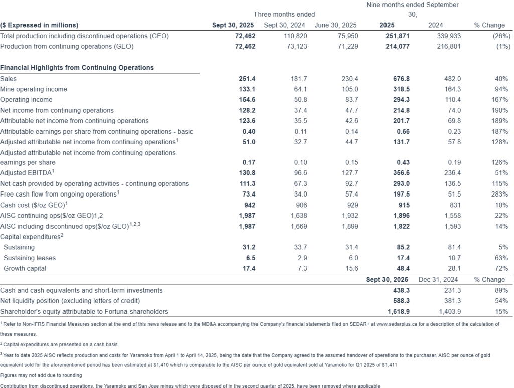 Original Article: https://www.globenewswire.com/news-release/2025/11/06/3182139/0/en/Fortuna-Reports-Results-for-the-Third-Quarter-of-2025.html
