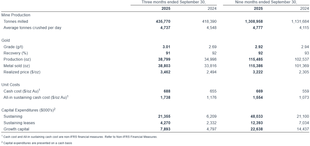 (Results from the Company’s San Jose and Yaramoko assets have been excluded from its Q3 2025 continuing results, along with the comparative figures, due to the classification of the assets as discontinued as at June 30, 2025.)