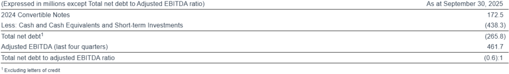 • Liquidity increased to $588.3 million, and the net cash1 position strengthened to $265.8 million, from $214.8 million in Q2 2025