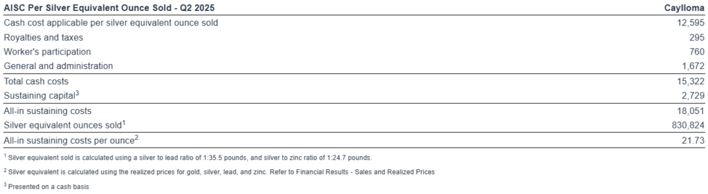 Reconciliation of all-in sustaining cash cost and all-in cash cost per payable ounce of silver equivalent sold for the three months ended June 30, 2025 and for the three and nine months ended September 30, 2025 and 2024