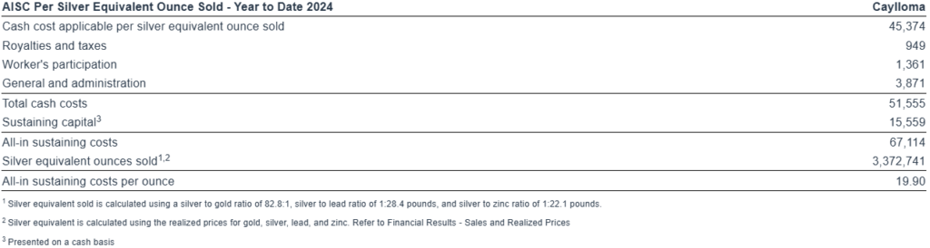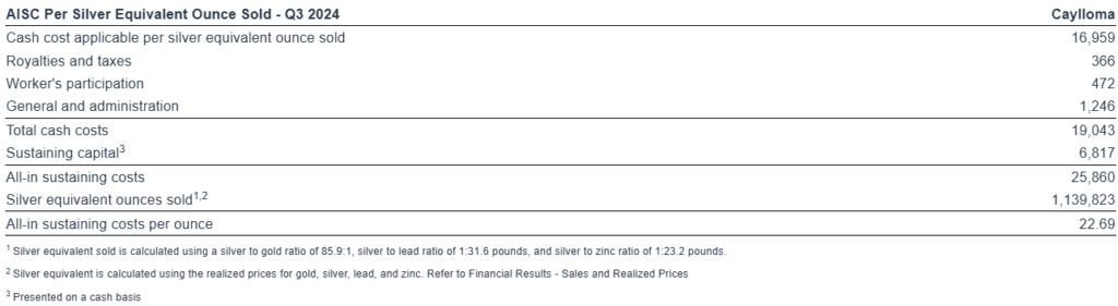The all-in sustaining cash cost per ounce of payable silver equivalent in the third quarter of 2025 increased 11% to $25.17 compared to $22.69 for the same period in 2024. The increase for the quarter was the result of higher cash costs per ounce and lower silver equivalent ounces due to higher silver prices.