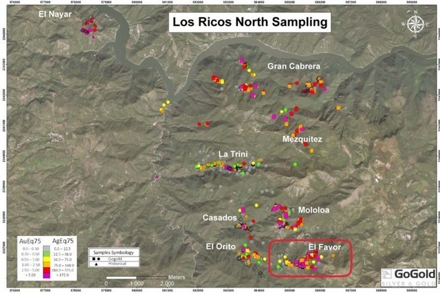 The Los Ricos North Project was launched in March 2020 and includes drilling at the El Favor, La Trini, and El Orito targets.