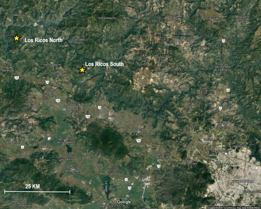 The Company’s two exploration projects at its Los Ricos property are in Jalisco state, Mexico. The Los Ricos South Project began in March 2019 and an initial resource was announced on July 29, 2020 which indicated a Measured & Indicated Mineral Resource of 63.7 million ounces AgEq grading 199 g/t AgEq contained in 10.0 million tonnes, and an Inferred Resource of 19.9 million ounces AgEq grading 190 g/t AgEq contained in 3.3 million tonnes. An initial PEA on the project was announced on January 20, 2021 indicating an NPV5% of US$295M.