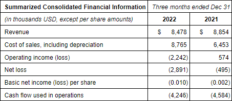 This news release should be read in conjunction with the interim condensed consolidated financial statements for the quarter ended December 31, 2022, notes to the financial statements, and management’s discussion and analysis for the quarter ended December 31, 2022, which have been filed on SEDAR and are available on the Company’s website.