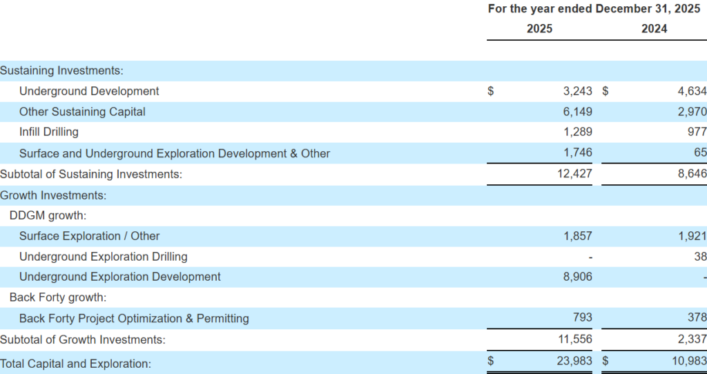• The Company closed the year with a $25.0 million cash and cash equivalents balance at December 31, 2025. The increase of $23.4 million from December 31, 2024 is the result of the Company’s focus on improving its cash position, mostly through the issuance of debt and equity in 2025, as well as improved production and higher metal prices.