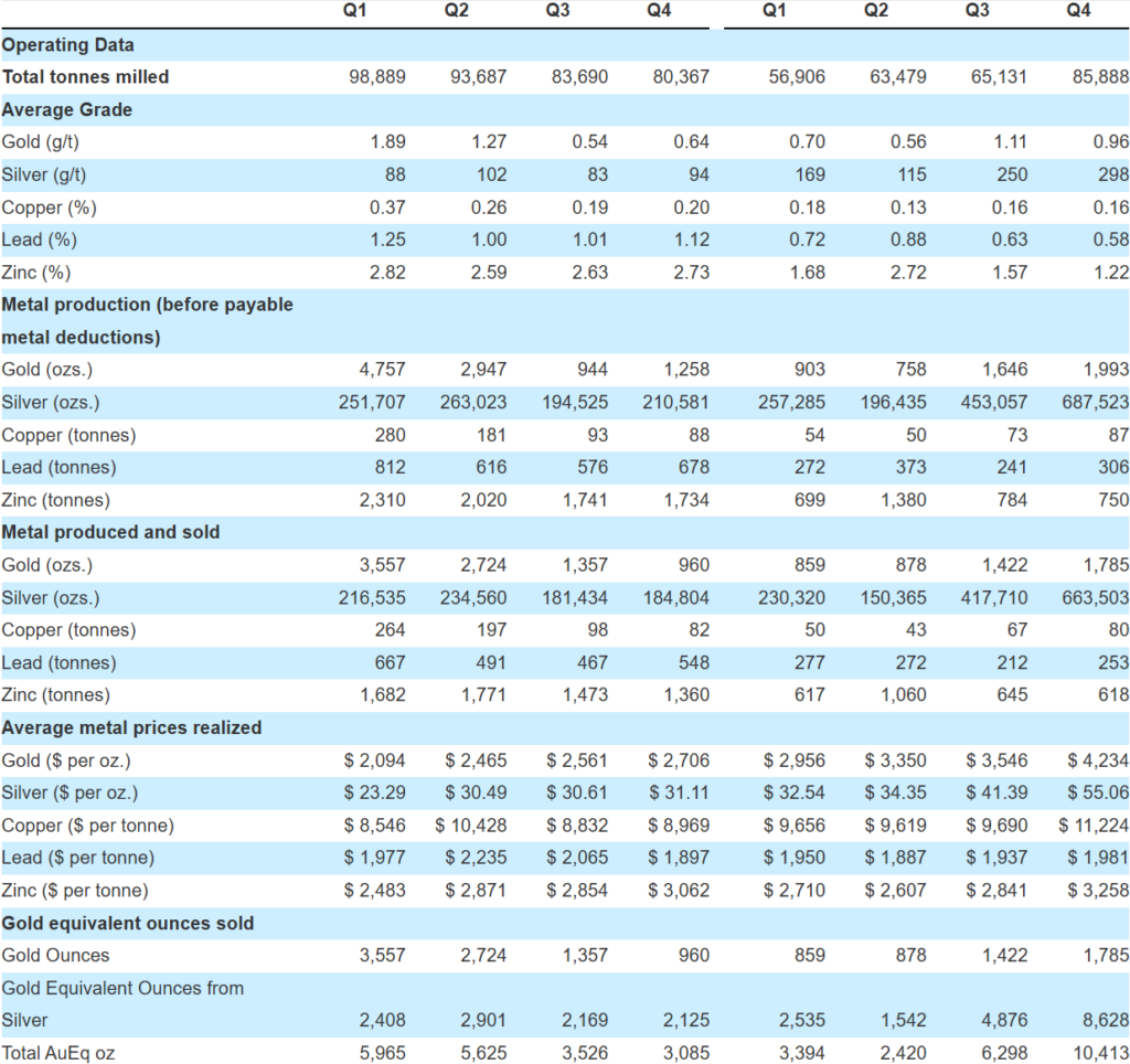 “We are pleased to report a successful operational turnaround during 2025 that culminated in a strong fourth quarter finish and over $25 million in cash and equivalents on the balance sheet,” said Allen Palmiere, President and CEO. “Obviously, favorable metal prices were a meaningful contribution which realized an average of $55 per ounce for silver and $4,234 per ounce for gold metal sales. Production from our Three Sisters zone made a significant contribution, as expected, and as a result we anticipate that silver will represent approximately 40% of our output from this zone in 2026 and enhance our leverage to the silver market. Our operations team in Mexico has executed exceptionally well on our 2025 objectives, delivering solid year end results, positioning us for continued momentum in the year ahead.”