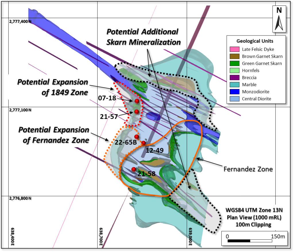 with Potential Expansion of 1849 and Fernandez Zones and Areas of Potential Additional Skarn Mineralization