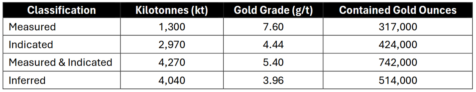 The PEA is based on a resource update of the November 27, 2023, resource with 742,000 ounces of Measured and Indicated and 514,000 ounces of Inferred resources.