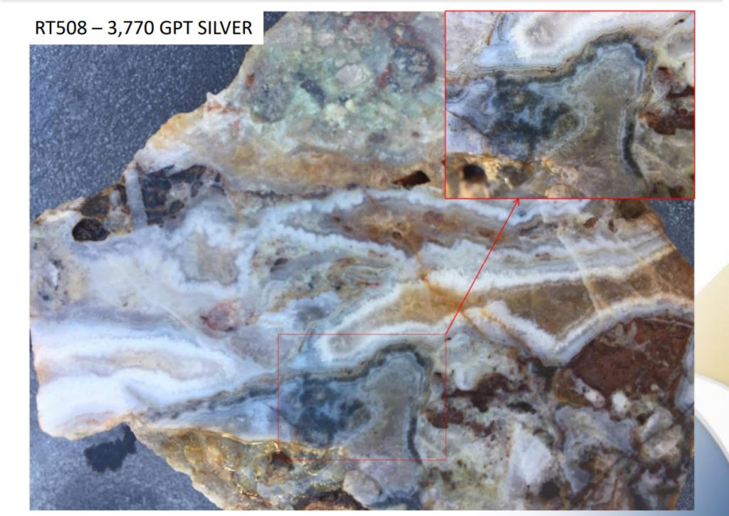 - 7.2 gpt gold and 3,770 gpt silver in grab samples from 5 Senores and Agua Veins, respectively;