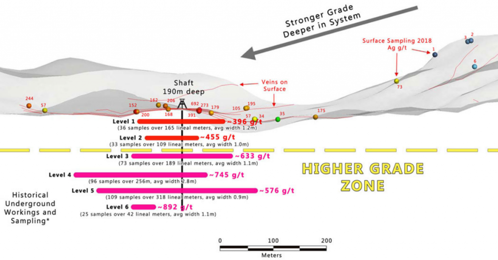 - 769 gpt silver over 1.1 meters and 317 gpt silver over 4.36 meters within 72 gpt silver over 36 meters in the F Vein structure.