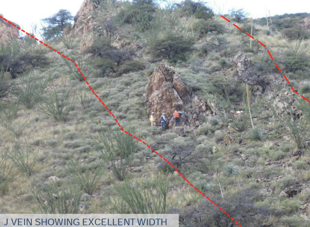- Well mineralized zone averaging 449 gpt silver over 11.3 meters from 81.1 meters downhole.