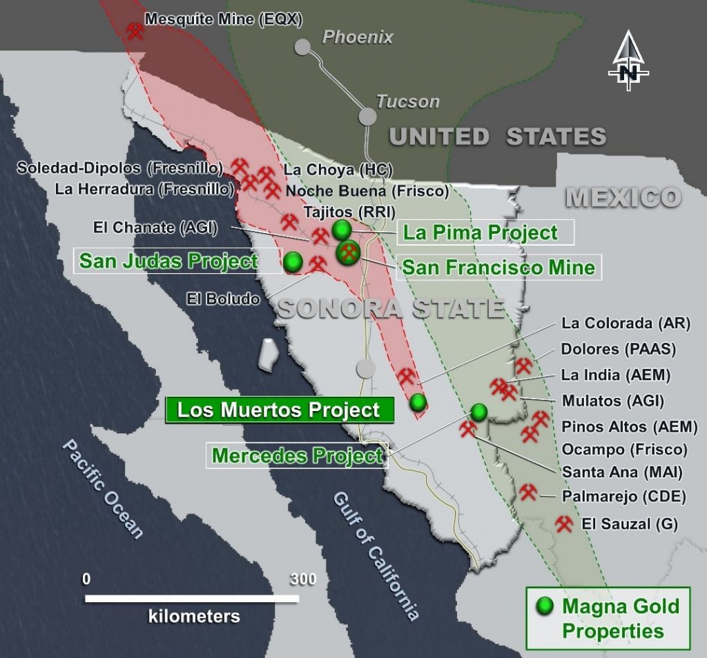 Magna Gold Corp. is a Canadian gold company engaged in operations, development, exploration and acquisitions in Mexico. Its primary asset is the producing San Francisco gold mine in Sonora, Mexico and exploration stage projects include San Judas, La Pima and Mercedes.