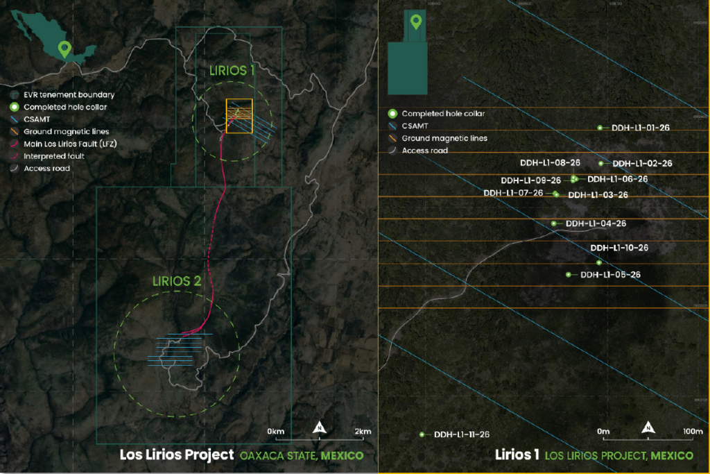 - Tecomatlán Plant operational readiness on track for 2H2026, a cornerstone of EVR’s near-term production strategy. This strategy involves processing ore from artisanal miners whilst Los Lirios advances.