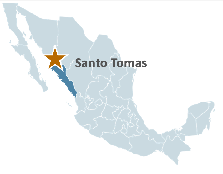 The Santo Tomás Project is located within 170 km of the Pacific deep-water port at Topolobampo and is serviced via highway and proximal rail (along corridors of trunk grid power and natural gas) through Los Mochis to the northern city of Choix.
