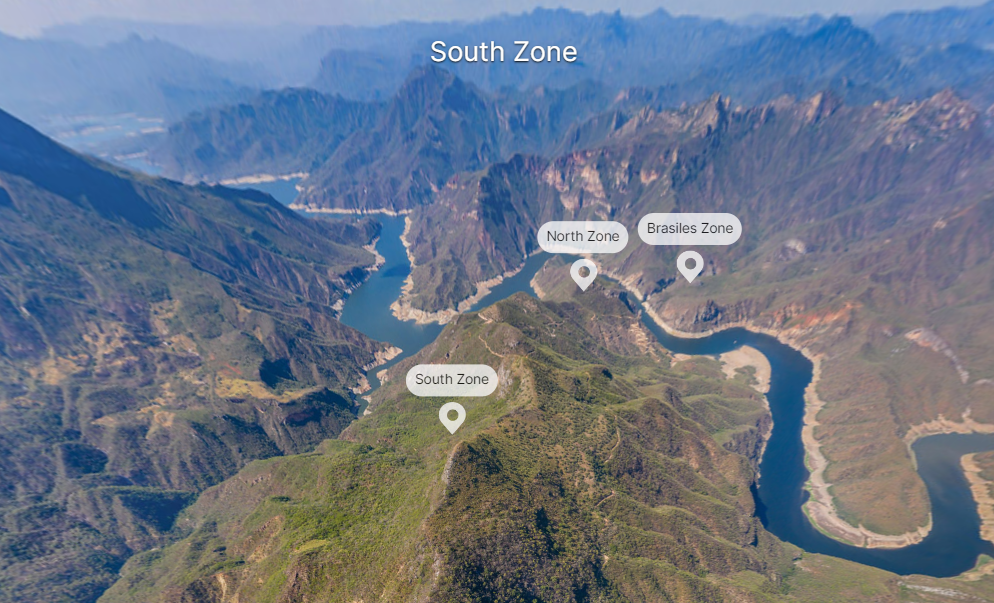 Historical drilling, surface geological mapping, and the Dias Geo 3D Induced Polarization survey have defined near-surface mineralization projected to 400 m below the surface along 2,000 m of strike length in the South Zone.