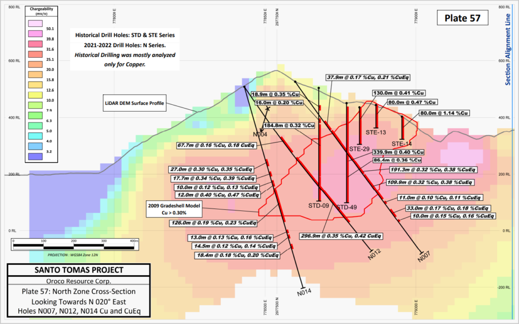 “These drilling results continue to support and guide our exploration campaign and will help the focus on defining the Santo Tomas North Zone” said Richard Lock, Oroco’s CEO.
