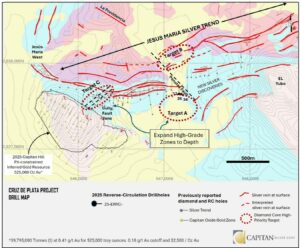 Capitan Silver Corp. announced high-grade drill results at Cruz de Plata, Durango, Mexico, including 1,833 g/t AgEq over 1.5 m within a broader 340 g/t AgEq over 21.3 m at the new high-grade silver zone, plus 1,254 g/t AgEq over 1.5 m within 157 g/t over 16.8 m along the Jesus Maria trend.