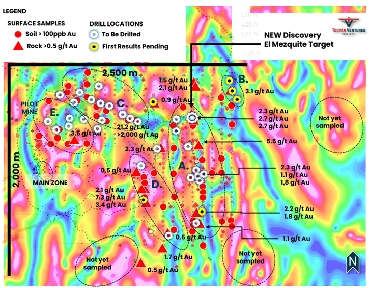 Tocvan Discovers New Gold-Silver Zone 1,600 Meters From Main Zone at South Block Gran Pilar; First Aggressive Step-Out Drilling Intersects Mineralization From Surface