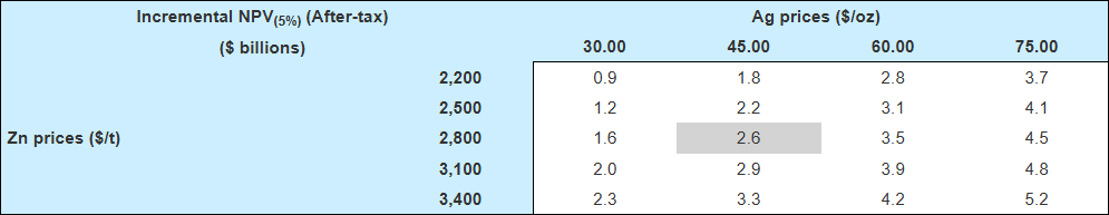 4. Assumes metal prices of $45.00 per ounce of silver, $2,800 per tonne of zinc and $2,000 per tonne of lead.