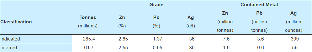 The indicated mineral resource, reported effective as at June 30, 2025, is estimated to total 265.4 million tonnes containing 309 million ounces of silver, 7.6 million tonnes of zinc and 3.6 million tonnes of lead. In addition, the inferred mineral resource is estimated to total 61.7 million tonnes containing 59 million ounces of silver, 1.6 million tonnes of zinc and 0.6 million tonnes of lead.
