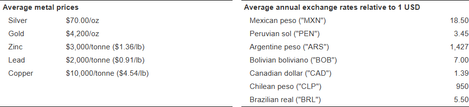 - San Vicente – higher royalties from higher metal price assumptions, scheduled plant maintenance in the first quarter of 2026 and an increase in sustaining capital related to tailings storage facility and plant upgrades.