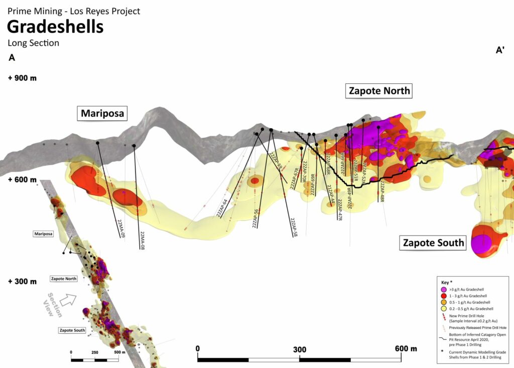 Vancouver, May 02, 2022 – Prime Mining Corp. (“Prime” or the “Company”) (TSX-V: PRYM, OTCQB: PRMNF, Frankfurt: 04V3) announces new drill results that continue to expand Zapote North, one of eight known mineralized deposits, at its wholly-owned Los Reyes gold-silver project (“Los Reyes”) in Sinaloa State, Mexico.