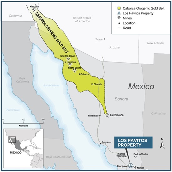The Los Pavitos project consists of a 5,289-hectare concession located in the well mineralized Alamos region of southern Sonora State that lies 25 km west of the well-mineralized Alamos District, which encompasses several active exploration and mining projects, including the past producing Alamo Dorado mine of Pan American Silver, the Piedras Verdes copper mine of Cobre de Mayo and the Alamos and Aurifero vein projects being explored by Minaurum Gold Inc. Infrastructure is excellent with paved highway access, electricity and water. The project, which was generated by Rafael Gallardo, was acquired from Minera Cascabel S.A. de C.V., a Mexican exploration and services company founded by Dr. Peter Megaw, an advisor to the Company (for terms see the Company’s prospectus filed on SEDAR). The Company completed a NI 43-101 Technical Report on the project in March 2021 available on SEDAR.